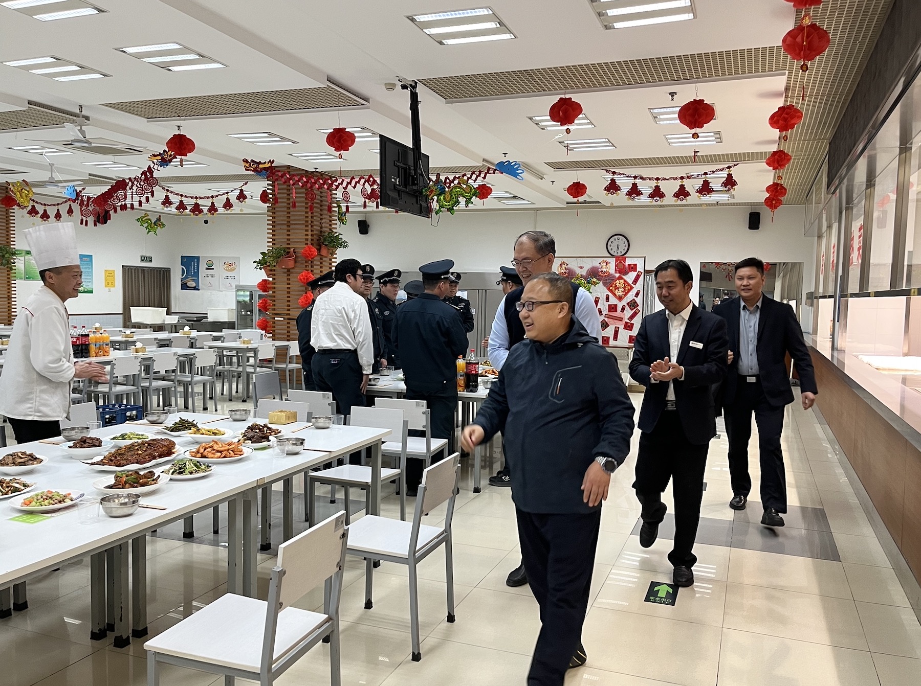 金龍獻瑞,福啟新歲。甲辰龍年大年初一上午,海國投集團黨委書記、董事長張國斌帶隊前往龍徽1910文化創(chuàng)意產(chǎn)業(yè)園,看望慰問堅守在值班崗位的一線職工干部,督導檢查齊樂龍龍過大年新春活動和園區(qū)停車場試運營情況,鼓勵大家上坡加油、勇攀高峰,全力以赴實現(xiàn)2024年各項任務“開門紅”。海國投集團副總經(jīng)理盧中軍,安辦主任陳培祥,智享出行公司董事長齊曉北,龍徽1910文創(chuàng)園副董事長、總經(jīng)理何歡,副總經(jīng)理彭楷涵,總經(jīng)理助理曹元陪同。