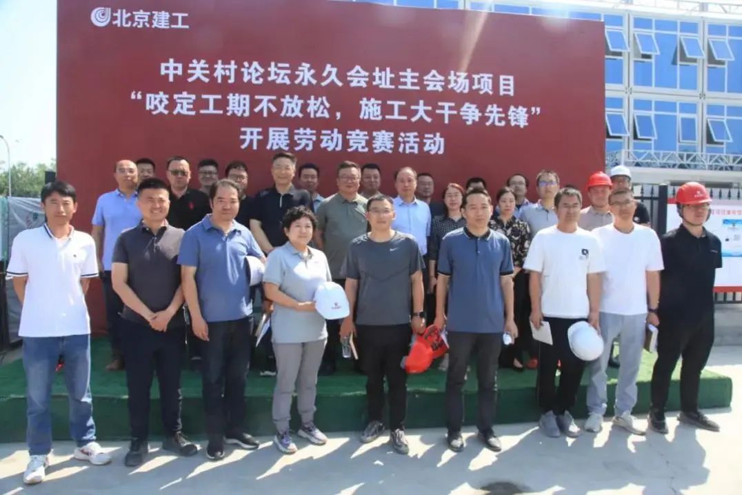 為確保中關(guān)村論壇永久會(huì)址主會(huì)場(chǎng)項(xiàng)目安全高質(zhì)高效完成“8.31”竣工目標(biāo),6月14日上午,中街公司同建工四建公司一同在論壇項(xiàng)目施工現(xiàn)場(chǎng)組織召開“咬定工期不放松,施工大干爭(zhēng)先鋒”勞動(dòng)競(jìng)賽動(dòng)員會(huì),本次勞動(dòng)競(jìng)賽將從工程質(zhì)量、進(jìn)度、安全、材料、后勤五個(gè)維度進(jìn)行全方位評(píng)比。中街公司董事長(zhǎng)張一峰,四建公司黨委副書記、總經(jīng)理李化,東方華太建設(shè)監(jiān)理公司總監(jiān)王萬(wàn)龍,四建公司副總經(jīng)理賈洪振,四建公司副總經(jīng)理、總工程師、中關(guān)村論壇項(xiàng)目總指揮長(zhǎng)張莉莉等領(lǐng)導(dǎo)出席本次動(dòng)員會(huì)。