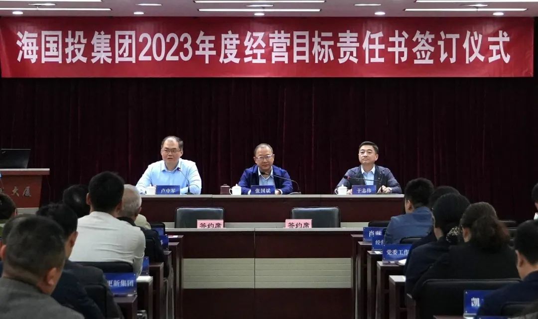為全面貫徹落實區(qū)委區(qū)政府及區(qū)國資委指示精神,提高集團(tuán)精細(xì)化管理水平及核心競爭力,確保集團(tuán)經(jīng)營目標(biāo)的實現(xiàn),5月6日,海國投集團(tuán)在鑫泰大廈一樓報告廳組織召開進(jìn)一步強(qiáng)化集團(tuán)經(jīng)營管理能力暨簽署2023年度經(jīng)營目標(biāo)責(zé)任書的會議。會議由集團(tuán)副總經(jīng)理盧中軍主持,集團(tuán)黨委書記、董事長張國斌,黨委副書記、總經(jīng)理于志偉出席本次會議,集團(tuán)總部全體領(lǐng)導(dǎo)班子、集團(tuán)總部各部門負(fù)責(zé)人、一級監(jiān)管企業(yè)領(lǐng)導(dǎo)班子80余人參加現(xiàn)場會議,部分下屬企業(yè)以視頻會議形式參加。