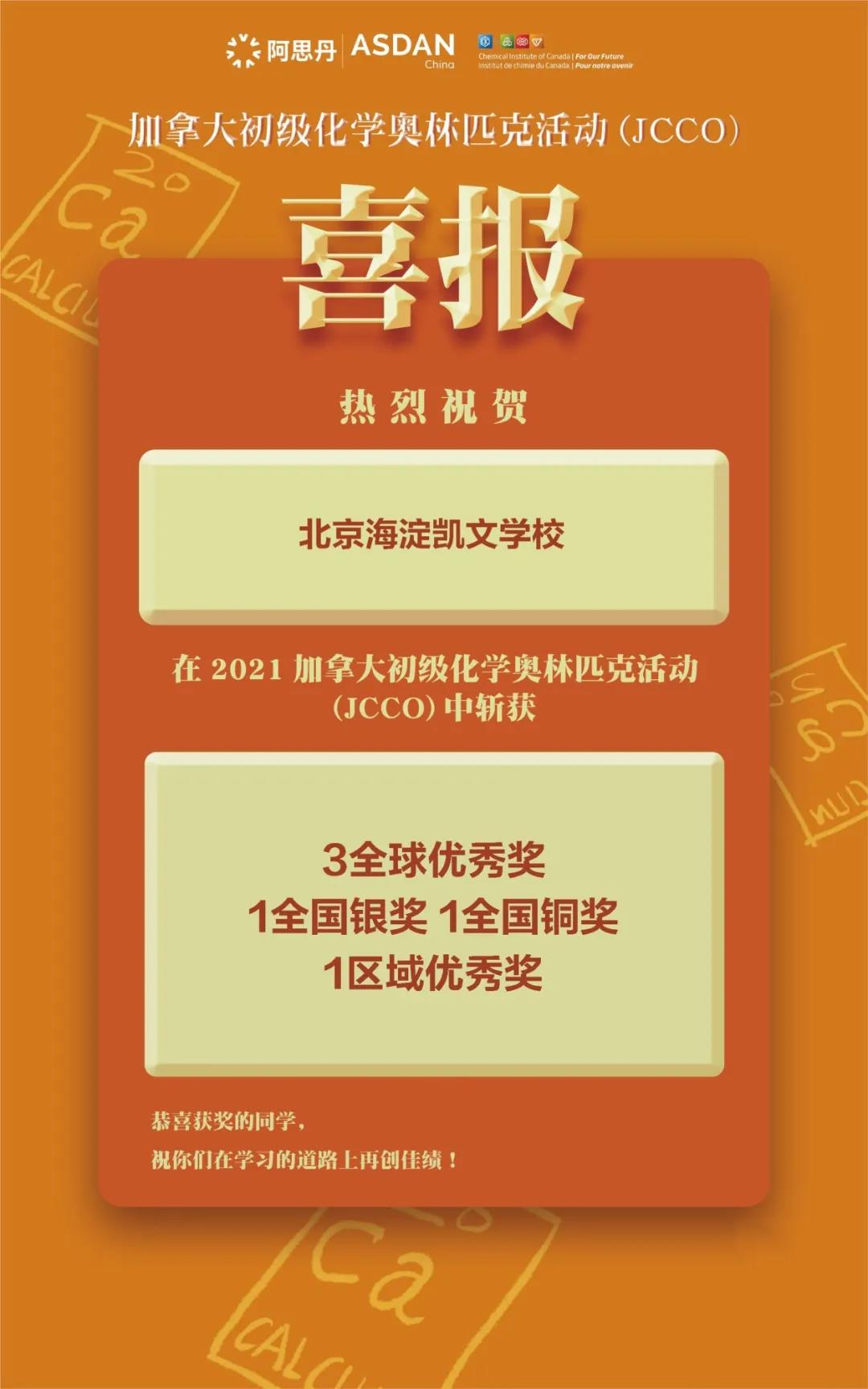 近期,加拿大初級(jí)化學(xué)奧林匹克活動(dòng)(JCCO)落下帷幕,中國區(qū)超過310所國際學(xué)校和公立學(xué)校的近2600名初高中學(xué)生參加了此次活動(dòng)。海淀凱文學(xué)子展現(xiàn)了過人的理科素養(yǎng)和扎實(shí)的學(xué)術(shù)功底并取得了優(yōu)異成績(jī),收獲頗豐。