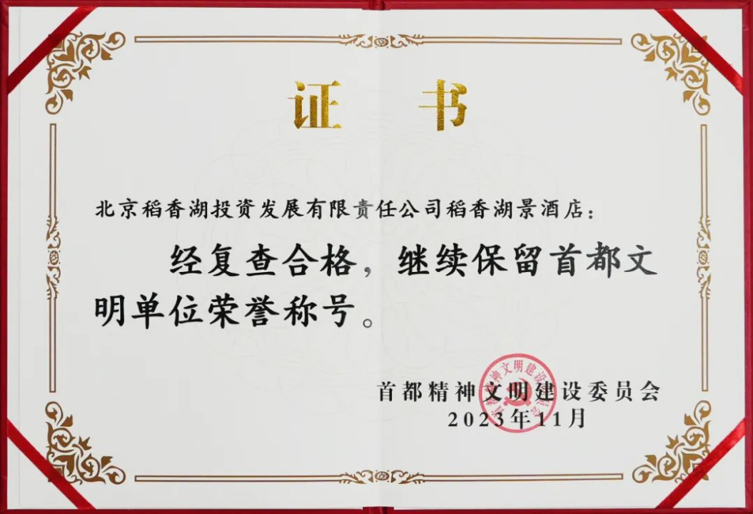 喜報(bào)!海國投集團(tuán)所屬龍徽文創(chuàng)公司及稻香湖景酒店榮獲“首都文明單位”稱號(hào)!